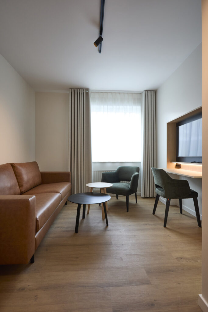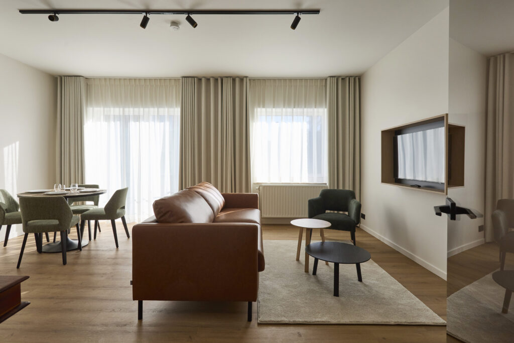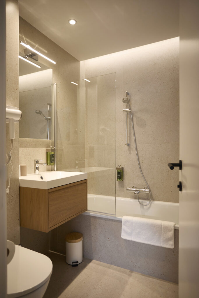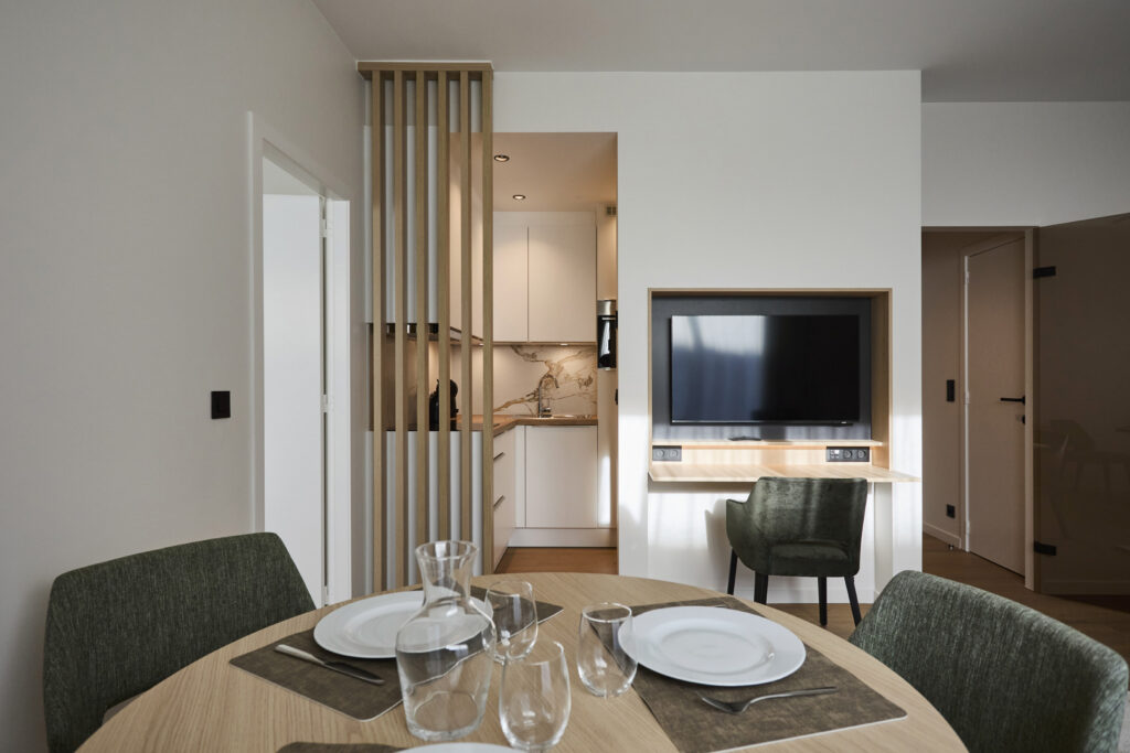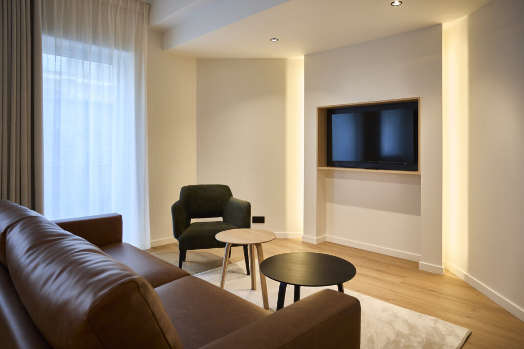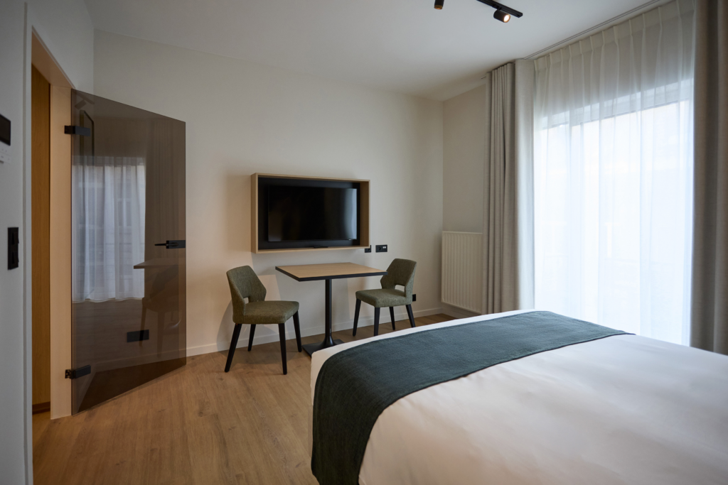 All our accommodations are designed to combine comfort, functionality, and connectivity. They feature modern furniture with built-in storage, a high-quality bedding, a video intercom system, a safe, a Smart TV with Chromecast, as well as high-speed Wi-Fi and wired Internet access via RJ45.